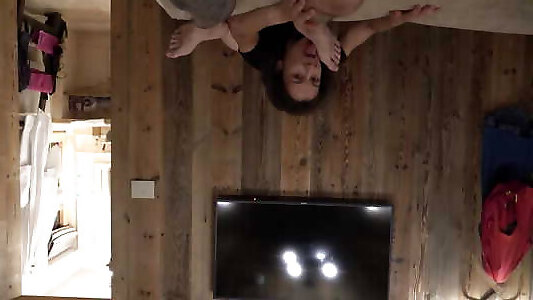 симпатичная хихикающая милфа быстро дрочит свой крошечный член