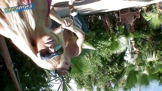 красивая блондинка снимает свое бикини, чтобы оседлать большой член