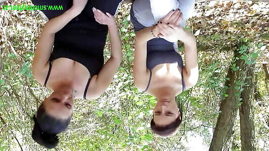 босоногая брюнетка демонстрирует свои подошвы на публике в парке