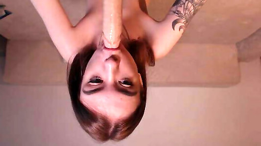 камслут разгружает искусственный член глубоко в горло и на лицо