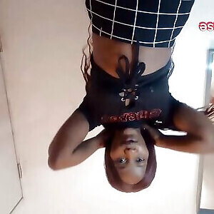 супер дымящаяся эбонитовая эссенция снимает свой красный сарафан, а затем играет со своим тугим влагалищем, пока она не кончает
