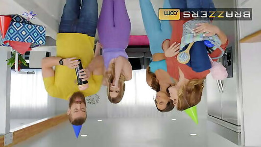 светловолосые красавицы в купальниках поражаются своим сводным братьям