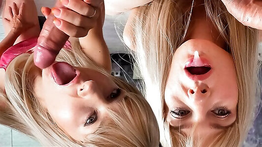 горячие девушки сосут члены, а затем трахаются вместе в горячем