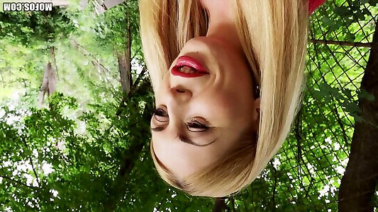 идеальная красная подводка для губ на этой нимфе, трахающей кость в парке