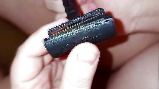 бритье киски триммером и бритвой крупным планом! легкие поглаживания!