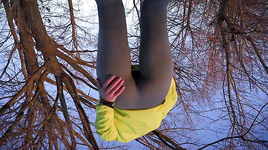 молоденькая японка демонстрирует свою упругую попку в обтягивающих леггинсах на открытом воздухе
