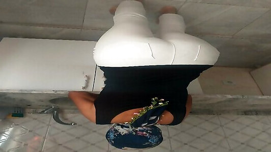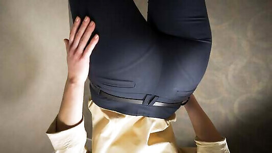 идеальная попка азиатки в обтягивающих рабочих брюках дразнит видимую линию трусиков