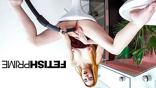 симпатичная рыжая в белых носочках мастурбирует огромным дилдо