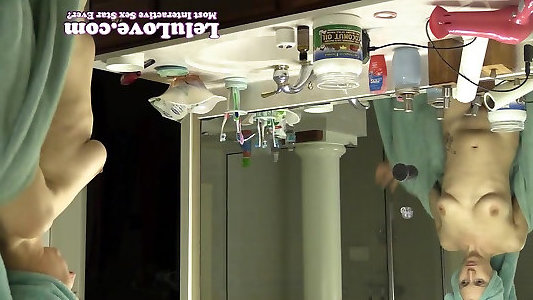 скрытая веб-камера в ванной комнате и ебля палкой, трахающейся с выстрелом спермы