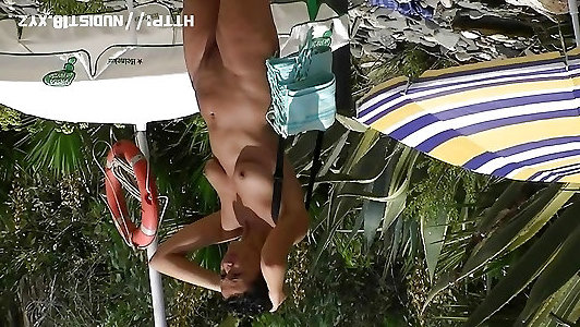 нимфа загорает голые бассейном voyeured