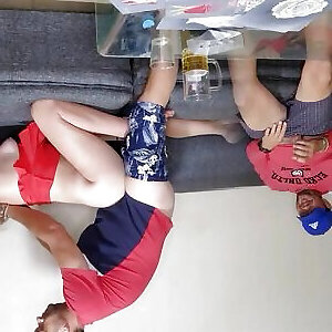 рогоносец наблюдает, как его друг трахает его девушку и делает оральную работу с внутренней эякуляцией