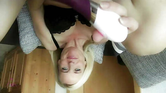 сказочная светловолосая жена, раздвинутая большим черным членом