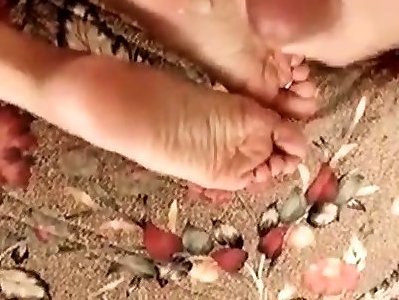 дрочка подошвами зрелых морщинистых ног и поток спермы