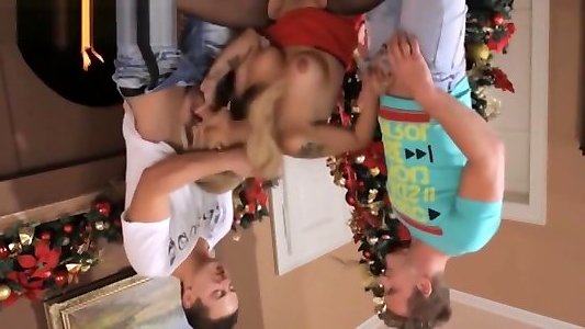 большегрудая мамаша нуждается в помощи от 2 мужчин на рождество