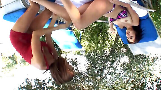 Girl-on-girl pool party and girlgirl girls make it flawlessly in the hole by fingerblasting each others hairless honeypots