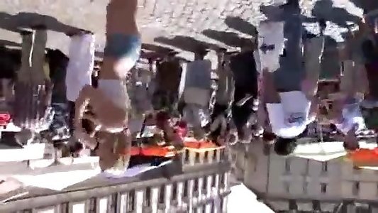 Super-steamy brown-haired Susana Dicks outside teasing her honeypot at a pool