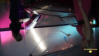 Naughty lesbo Sonia gives tongue job to her all girl girlfriend in the car