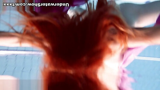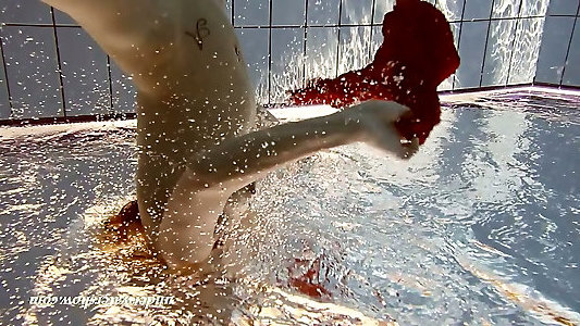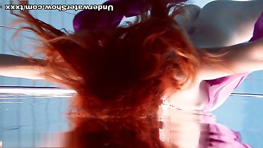 Red-haired hottie cutie anal macae swims under the water in the pool