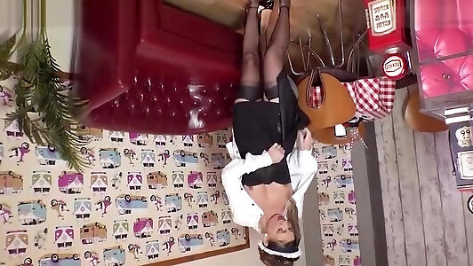 Marvelous French Waitress milks korean herpine carte in retro basque nylons