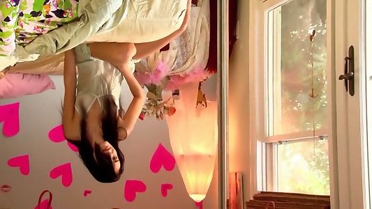 Big-chested brown-haired gymnast Evi Fox is caught masturbating