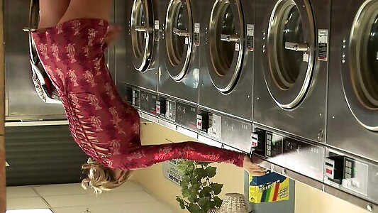 Aline is about to have fun with 2 meat pillars in the laundry guest room