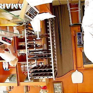 Dark-haired stunner Samantha Rosy riding a beefstick in a kitchen