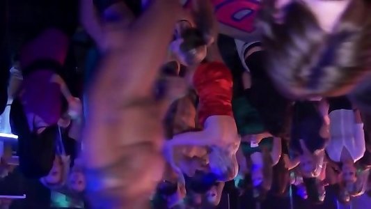 Three hungry sluts enjoy a gangbang in a swingers club sex party