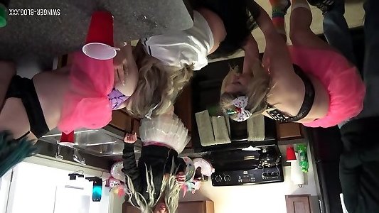 Swinger wife definetly wants to hook up with other women at busty strapon guys ass cum party
