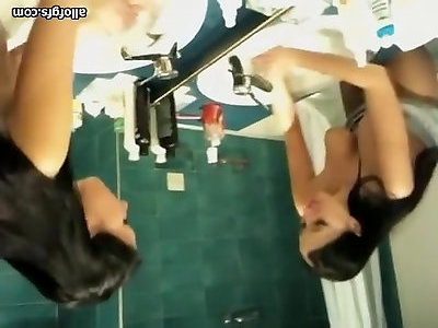 Astounding girlfriend flashes her genitals while showering