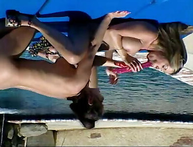 Blonde honey frigs and eats a small dark-haired’s ass hole