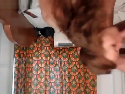 Mature mega-slut drilling and fellating immense faux-cock on webcam