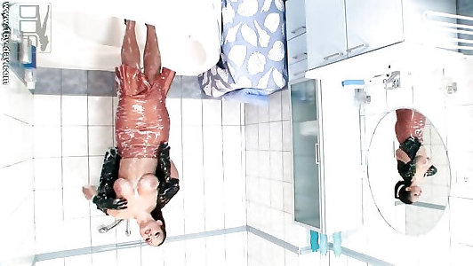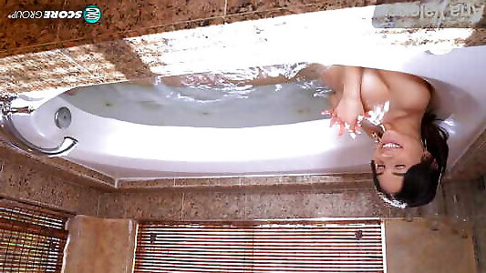 Aria Giovanni gets her boobs and ass soaped in the bubbly super-steamy tub