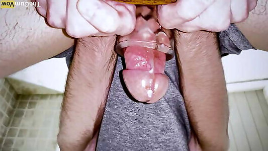 CLOSE-UP: Sight From Under Screwing Plaything - Uber-cute Frenulum & Thick Jizz Flow