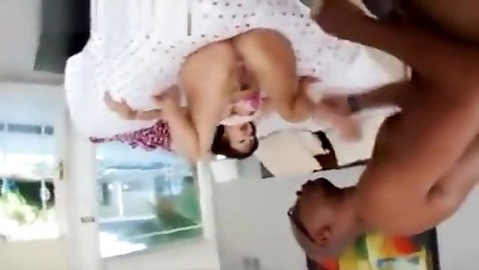 Ebony stud and japanese tramp in interracial assfucking bang-out