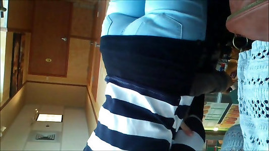 Cock-squeezing Youthfull Teen Culo IN Denim AT RESTAURANT Hidden Cam