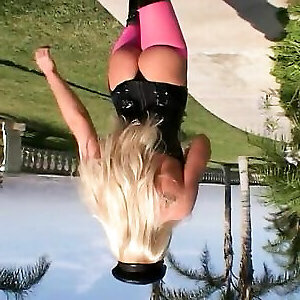 A towheaded hottie in rosy stretch pants with a fleshy backside gets all her fuck holes penetrated