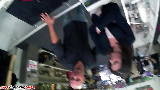 Orgy shop assistant stunner attempts on condoms on a horny customer