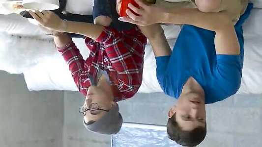 Sizzling blondie teens gets pummeled in a 3some concluding with some cum on a plate