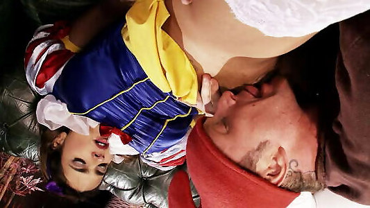 Dark-haired sweetheart in snow milky costume gets torn up by a boy