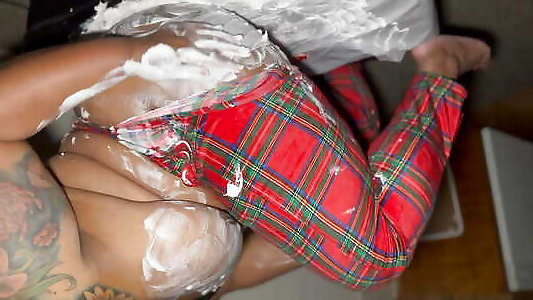 Plus-size sweetheart bound, completes with paraffin wax on her cupcakes