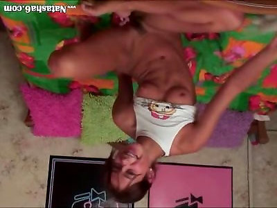 Rectal butt-plug in sweetie&039;s backside. Opening the vag