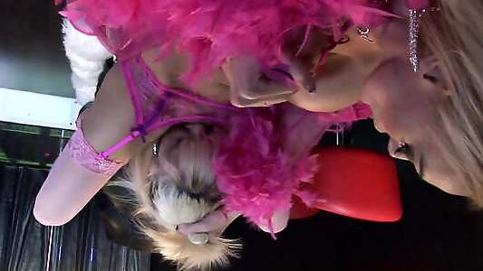 Crazy blond chick tongues saucy kitten of her buxomy brunette escort