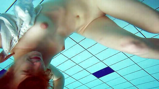 Massive mounds teenage Liza Bubarek swimming bare in the pool
