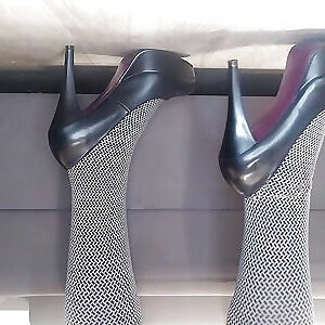 Beautiful woman makes me cum while standing at the window.. ASS JOB , LEG JOB