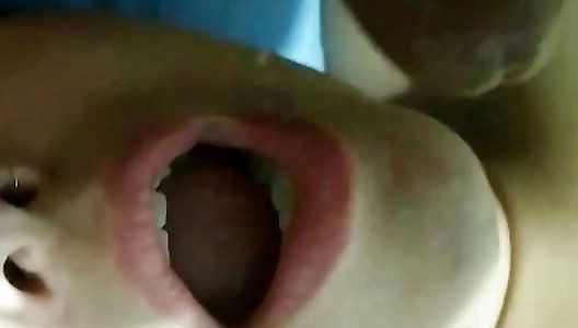 real hot wife performing amazing blowjob in close up view and swallowing cum