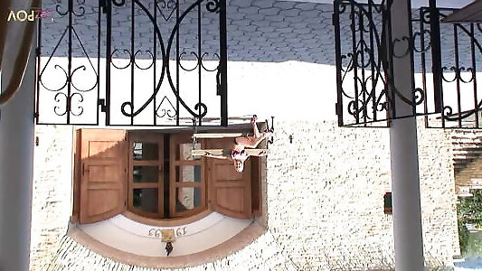 Prego gal sunbathing on balcony