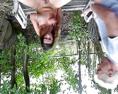 Hot redhead babe assfucked in the backyard