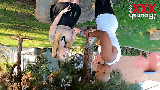 Uber-sexy blond gets her gullet, butt and cunny plunged with 2 enormous dark-hued rods