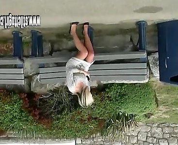 Buxomy light-haired Vyxen Steel takes a yam-sized dark-hued chisel outdoors