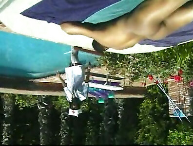 Ebony Dame Have Super-hot Three Way Poke By Pool